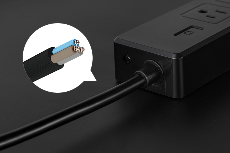 並內建電壓過載保護裝置,及雙層包覆絕緣電源線