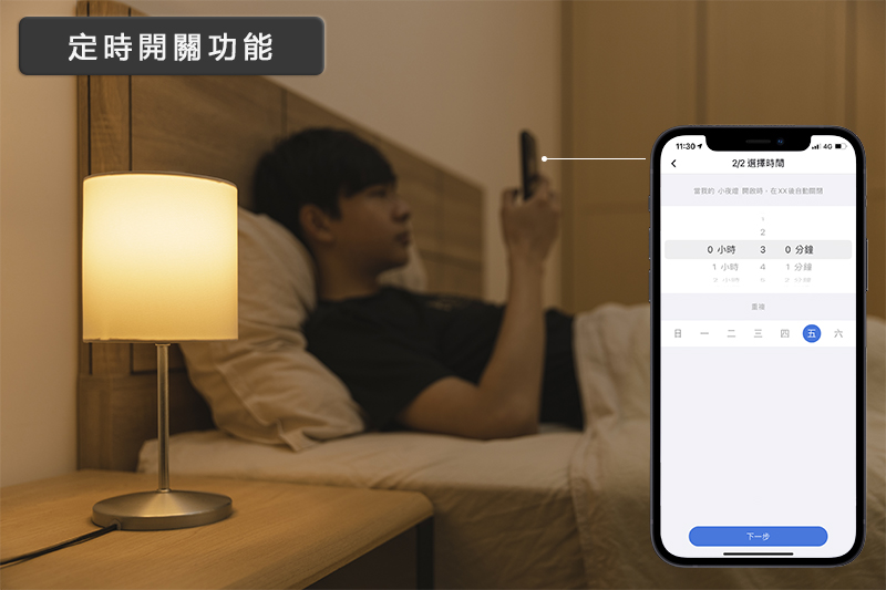 比方說,就寢時設定 30 分鐘後自動關夜燈