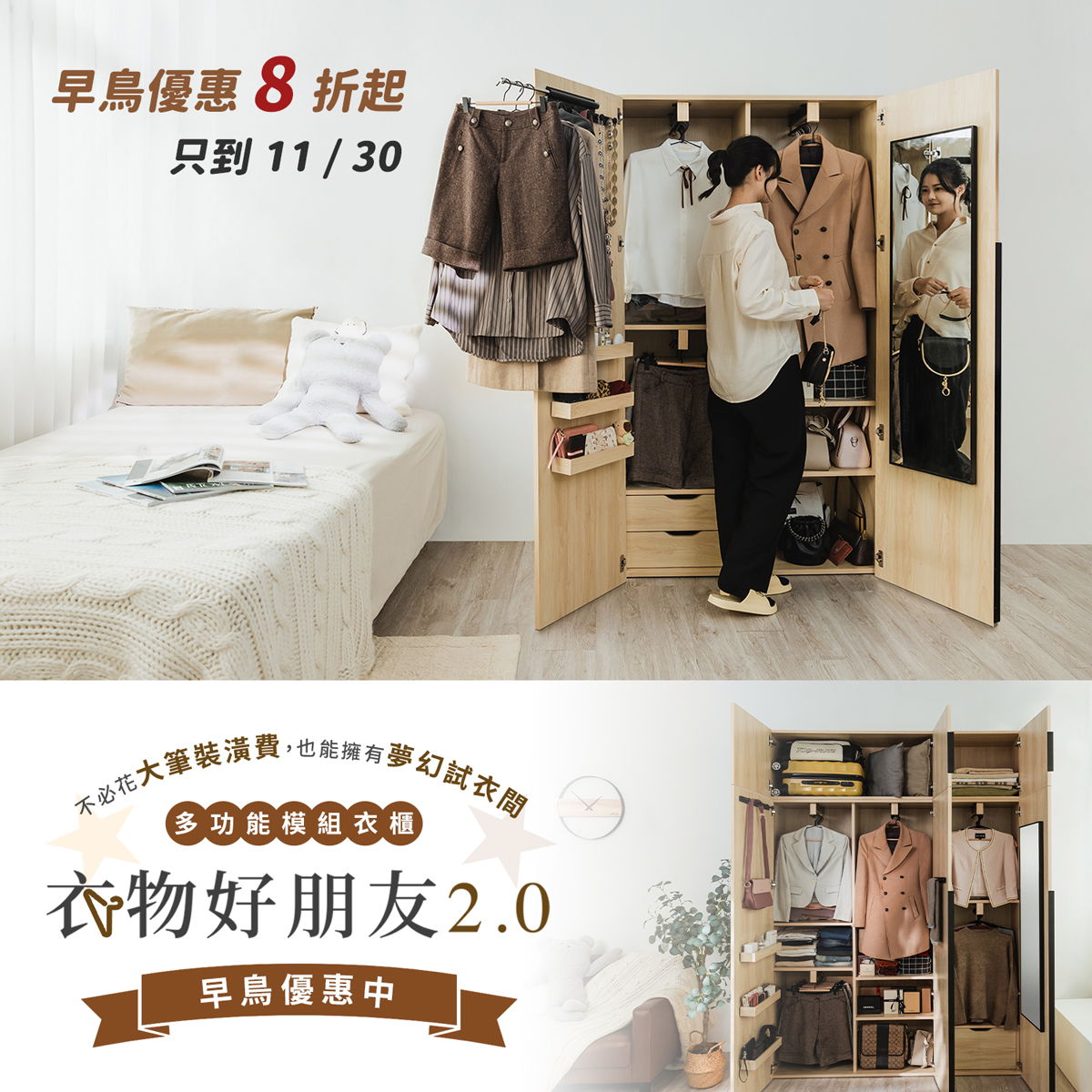 【新品優惠】衣物好朋友 2.0|多功能模組衣櫃