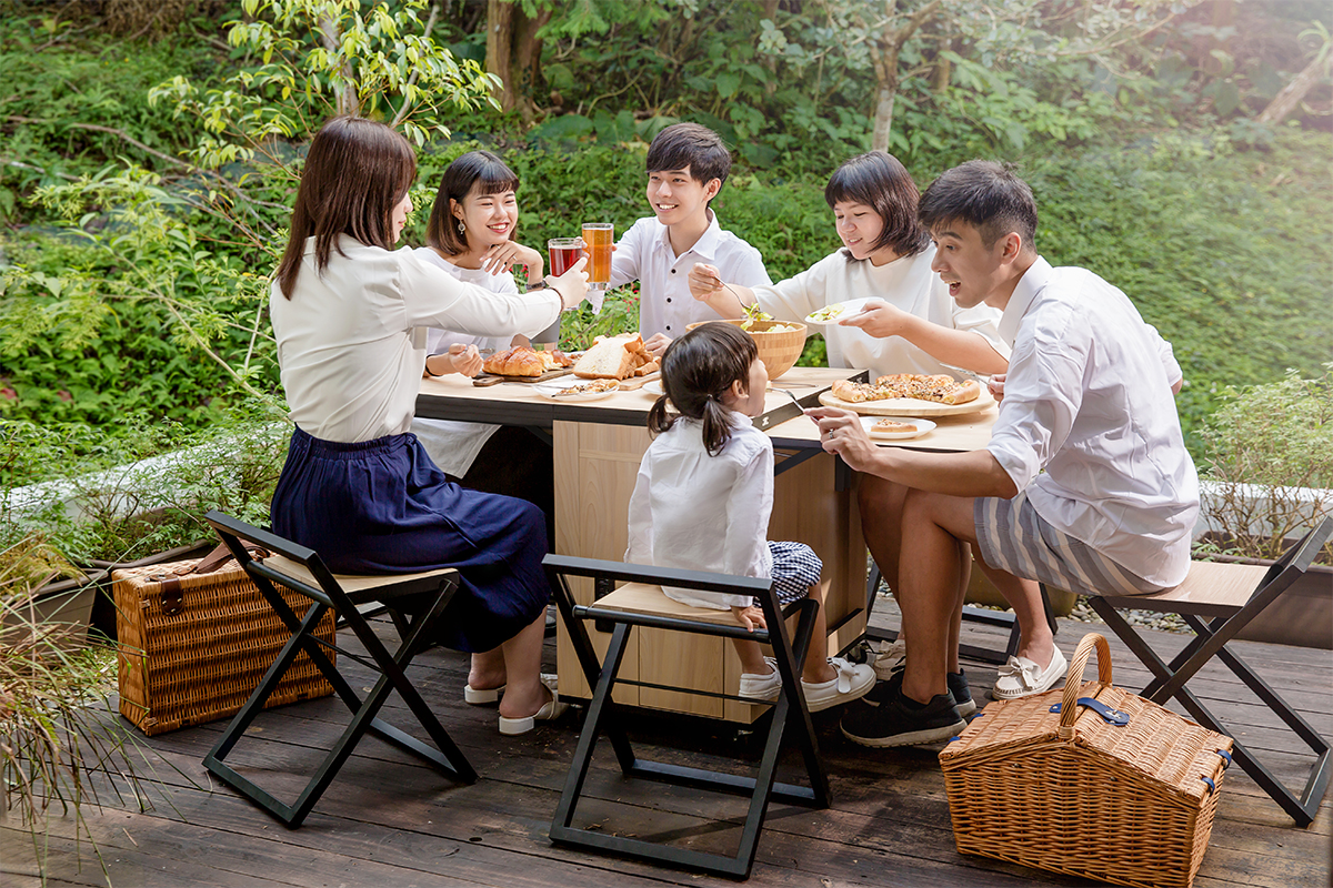 桌面展開成八人座的尺寸之後,除了可用來當餐桌外