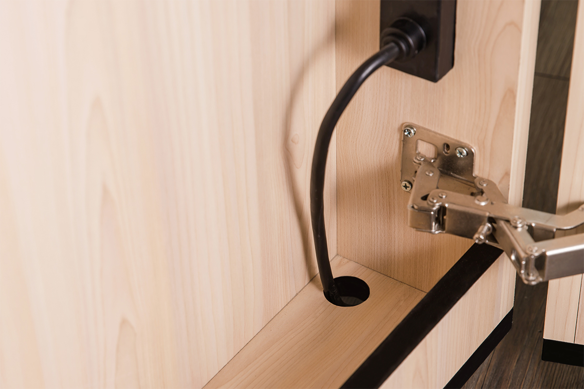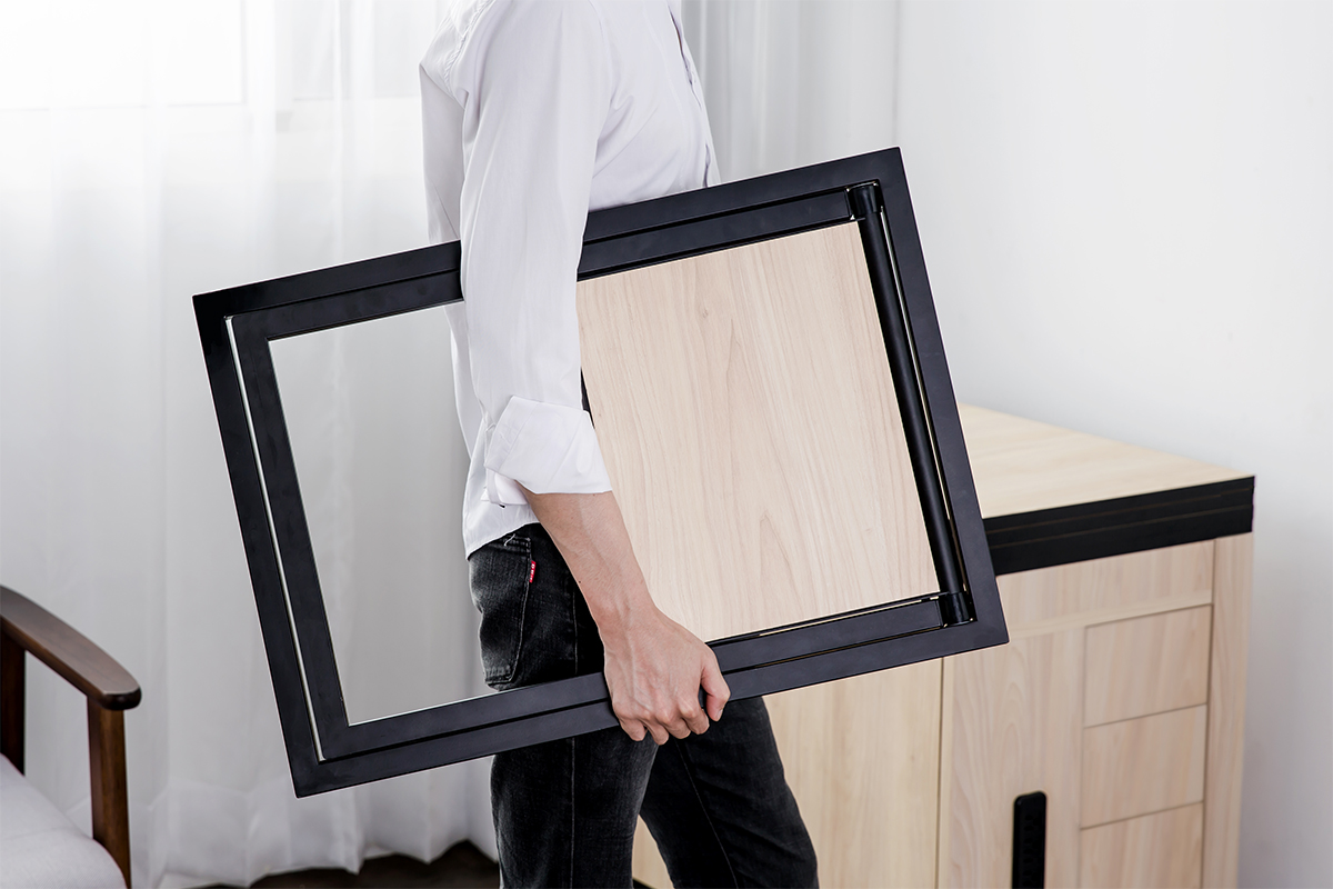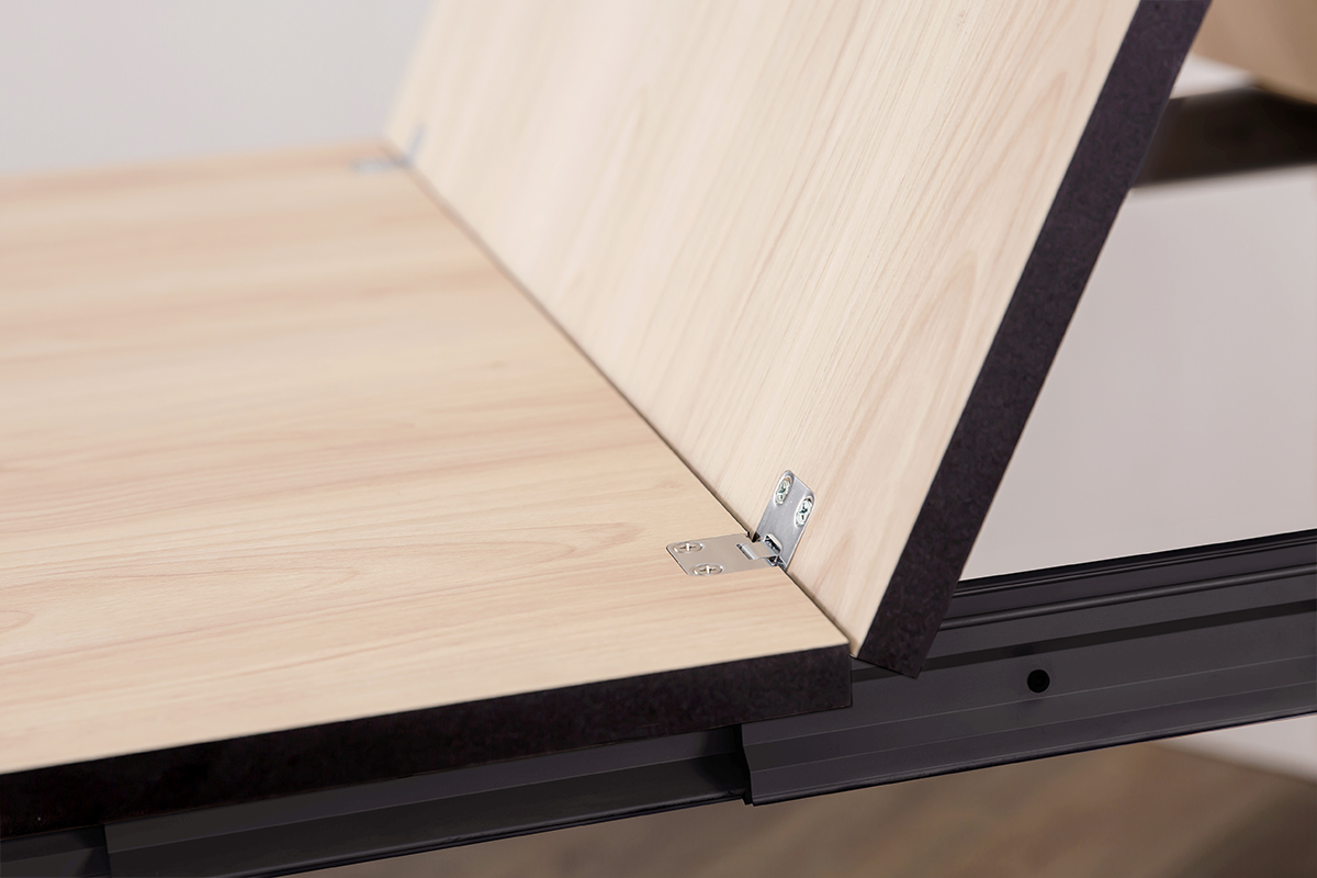▲ 折疊式桌板上的導圓角設計,安全又美觀