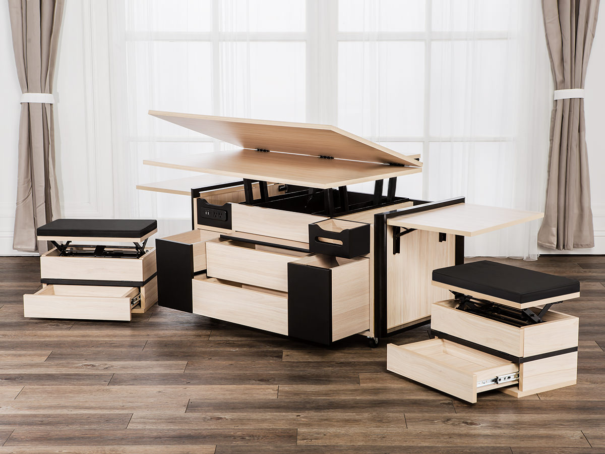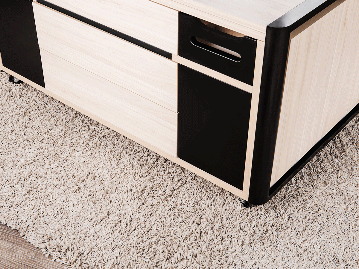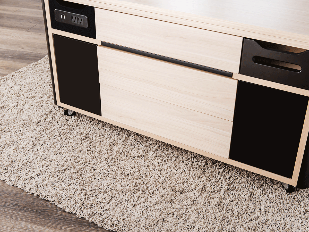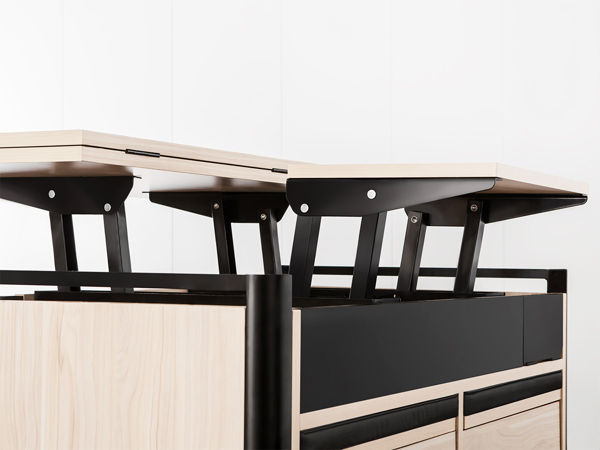 ▲ 桌面升起後,兩邊桌面分別都能耐重50公斤的重物