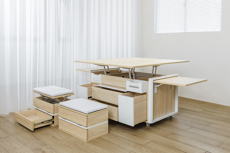 可配「升降變形椅凳」或「萬用收納櫃」使用