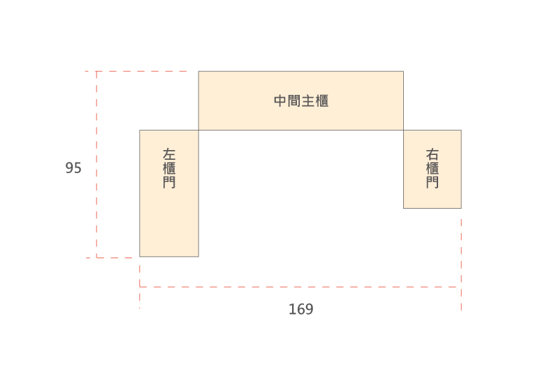 A:只要家中有169x95cm的空間就可以了!這樣便足夠讓兩側門片正常展開至90度使用。