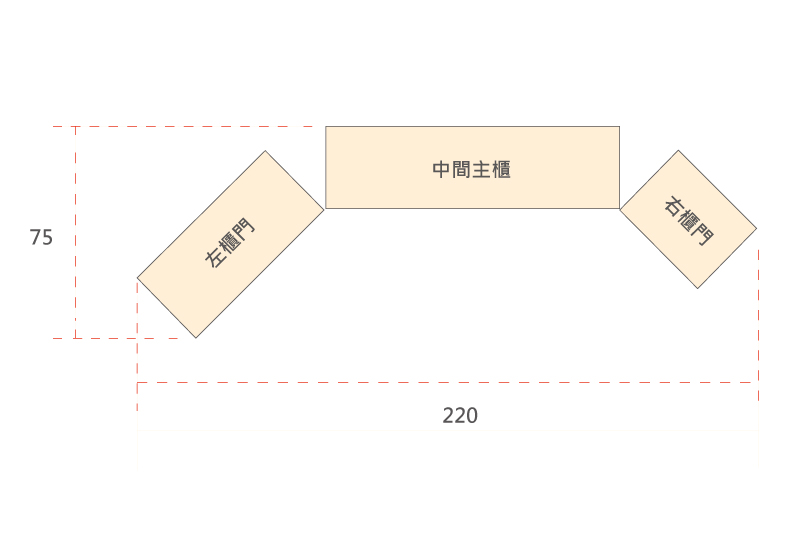 寬 220 高 200 深 75 cm