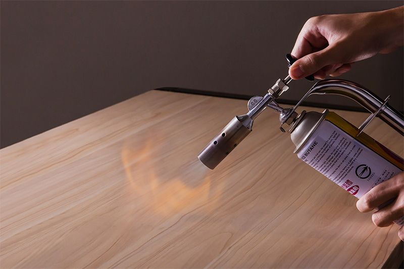 ▲ 耐焰測試:此種環保木材為一高級複合材料,具備極高的穩定性與安全性,耐燃效果遠高於未經耐燃處理的板材,俗話說真金不怕火煉,好板材也是。
