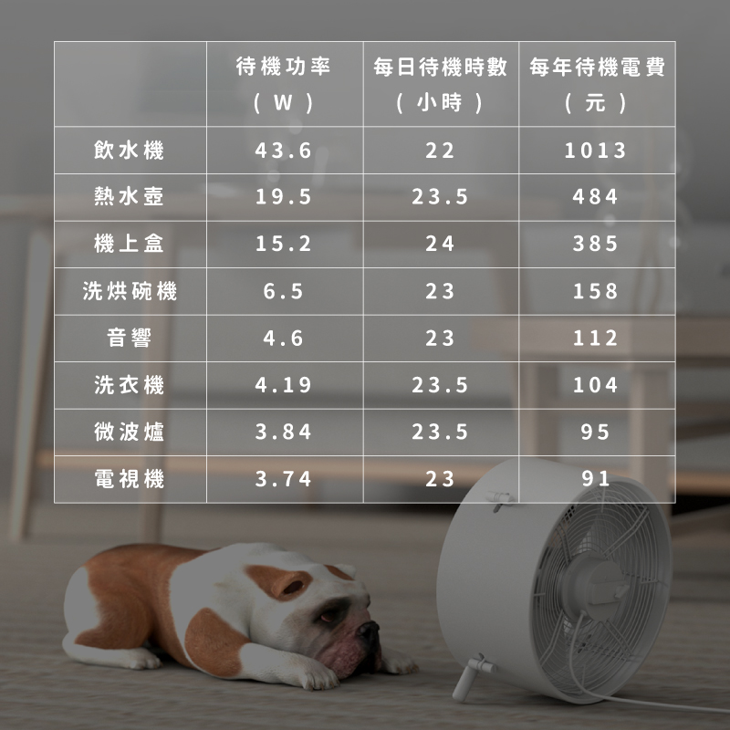 而長時間待機耗電,更會加速電路老化、減少電器壽命
