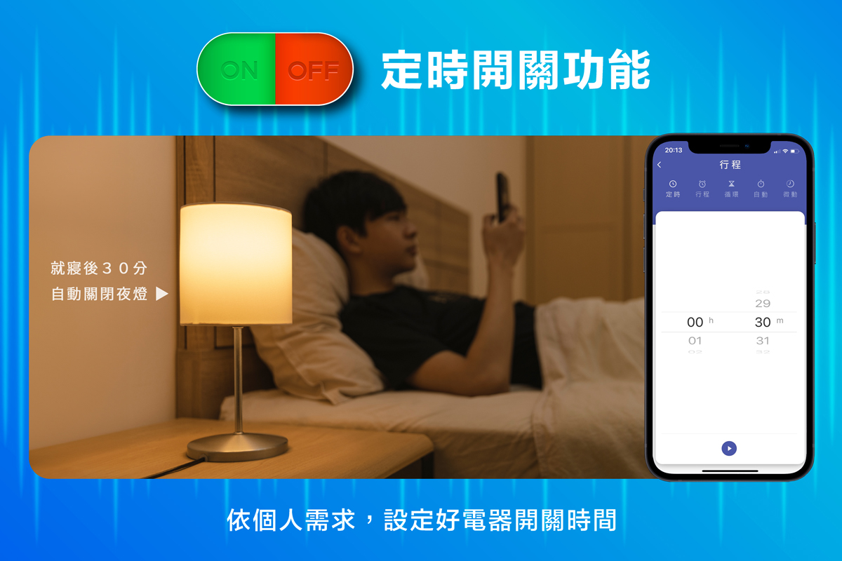 比方說,就寢時設定 30 分鐘後自動關夜燈